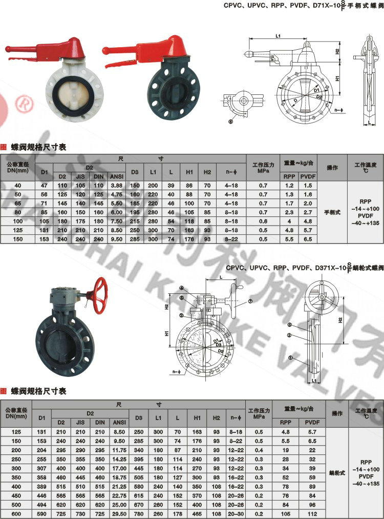 4、D71X-10S塑料蝶閥主要根據剖面、長度、高度、外形等作出說明。