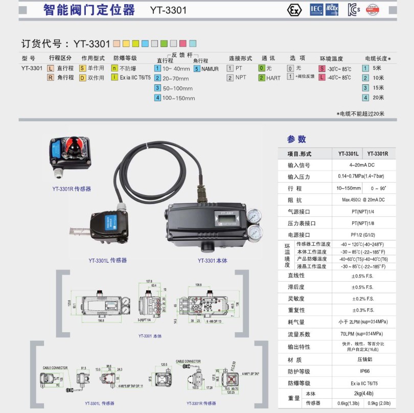 智能閥門定位器YT3301系列是通過接收控制器或控制系統(tǒng)發(fā)出的4~20mA 電流信號來控制閥門開關(guān)的裝置。